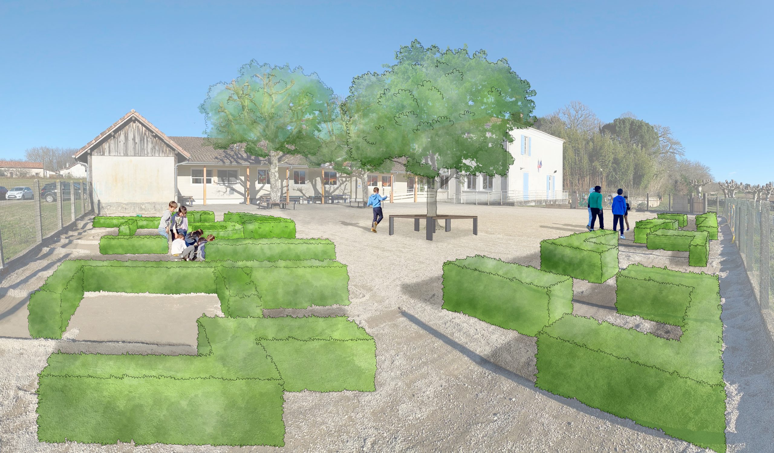 Lucbardez-et-Bargues : Intégration du végétal sous la forme ludique d’un labyrinthe pour développer la créativité, l’inclusivité et la diversité.