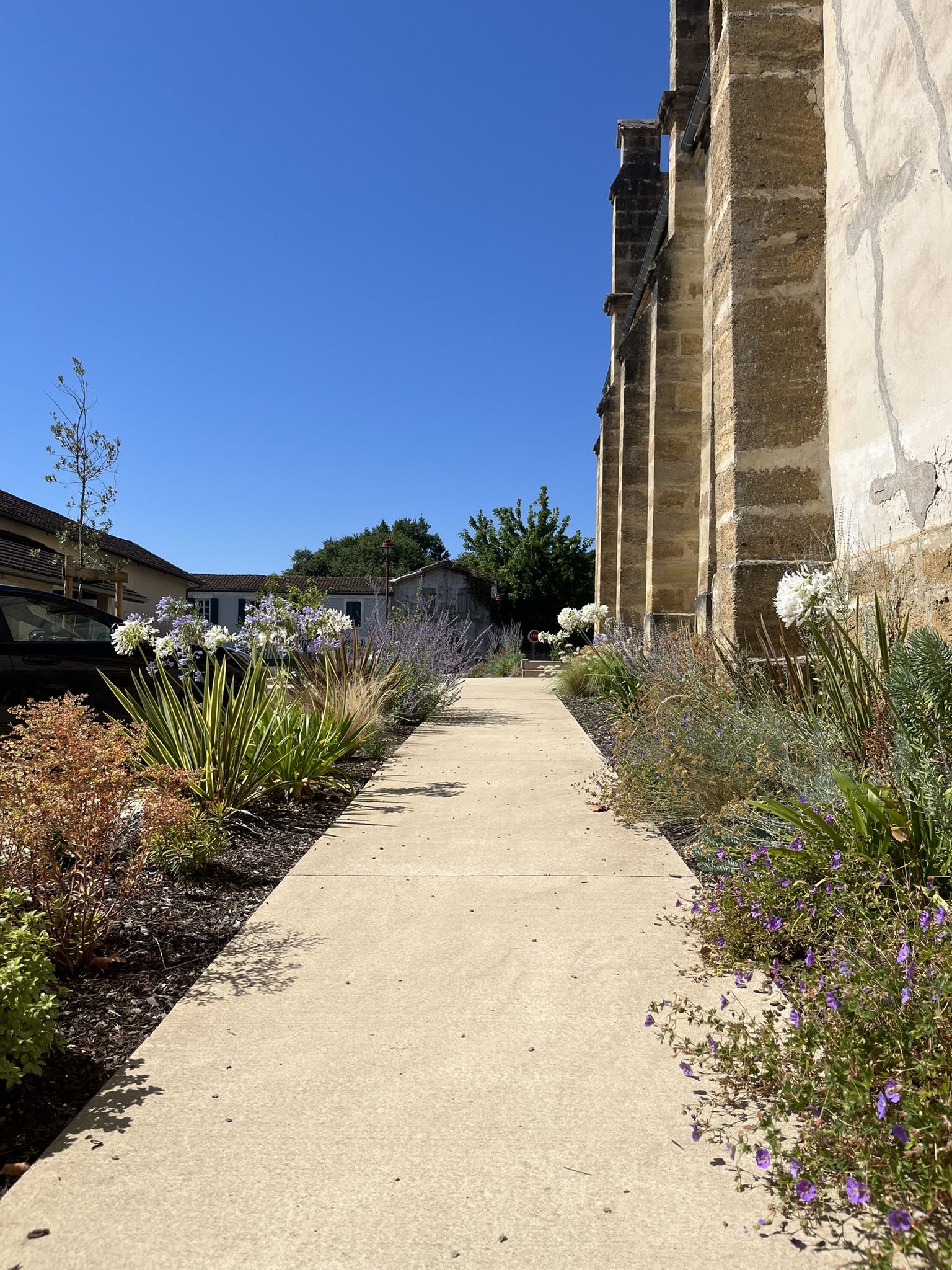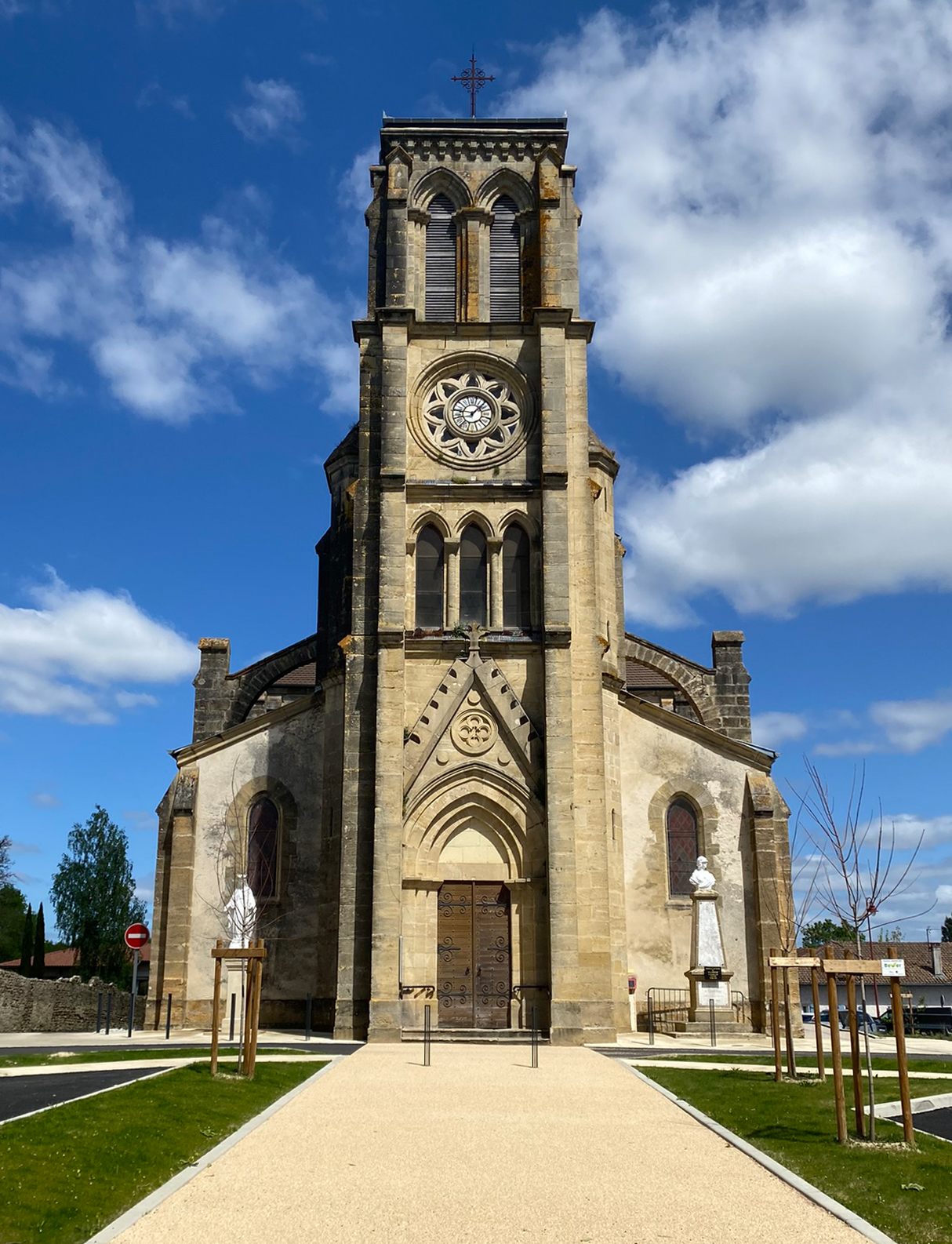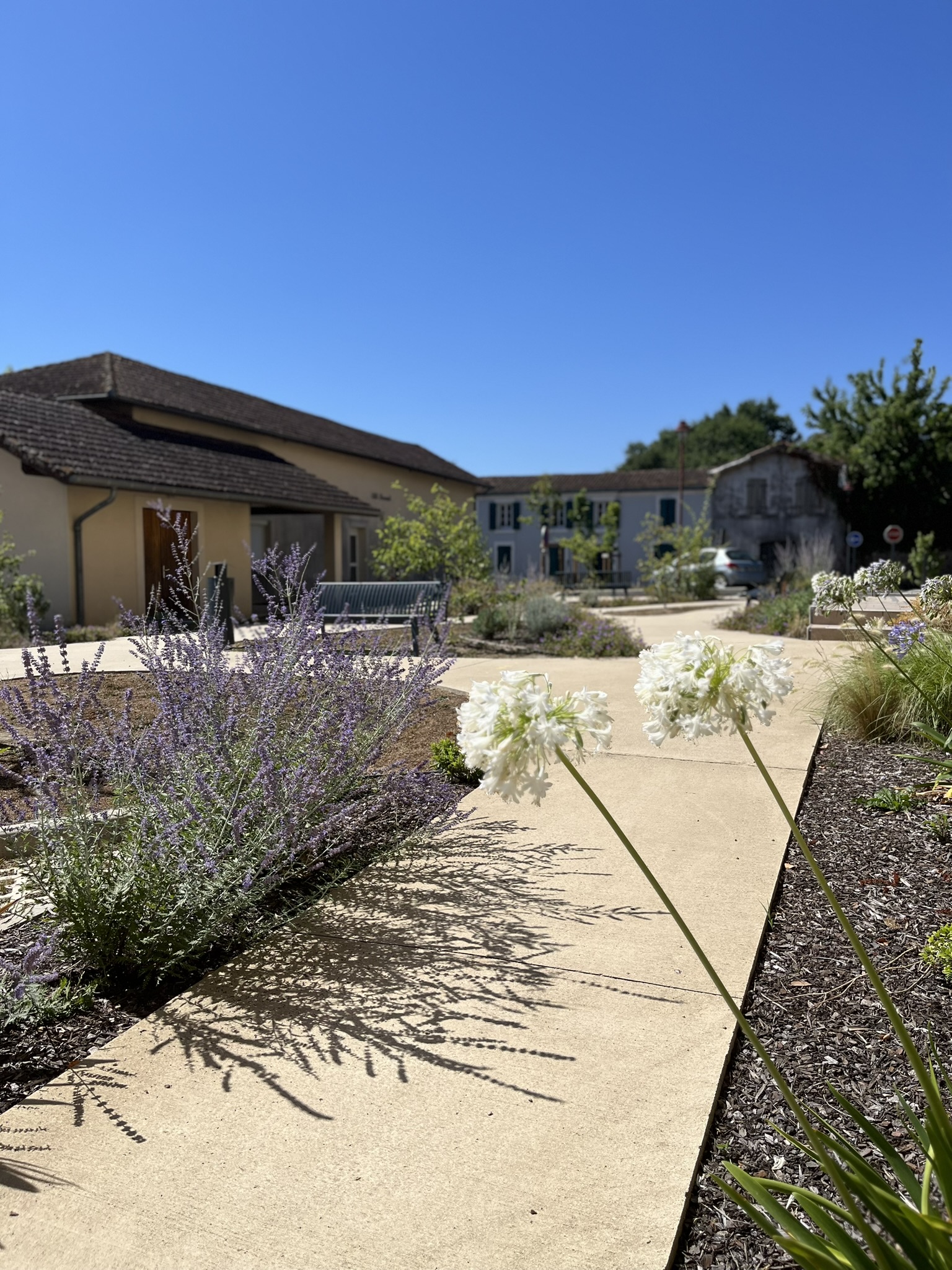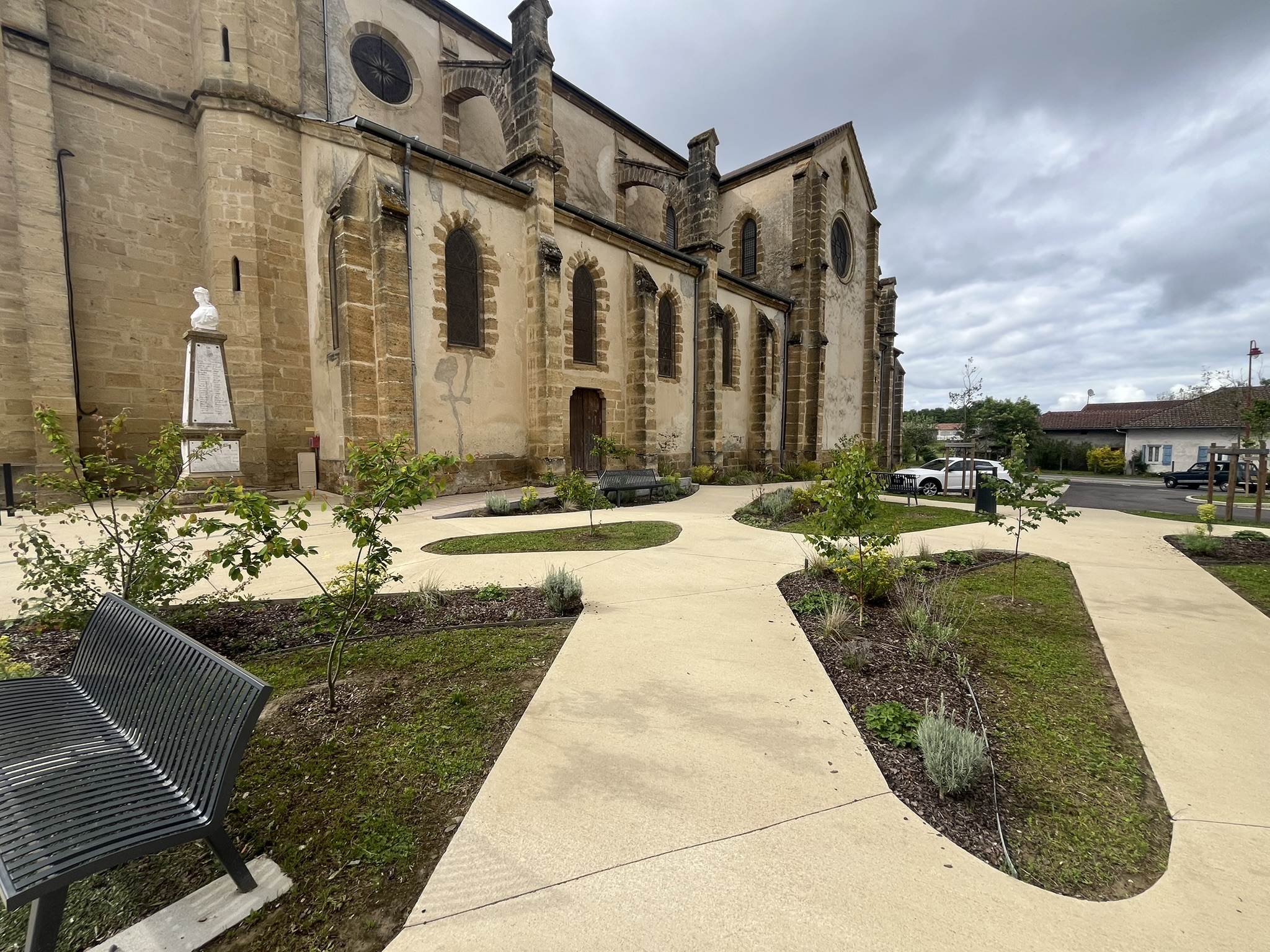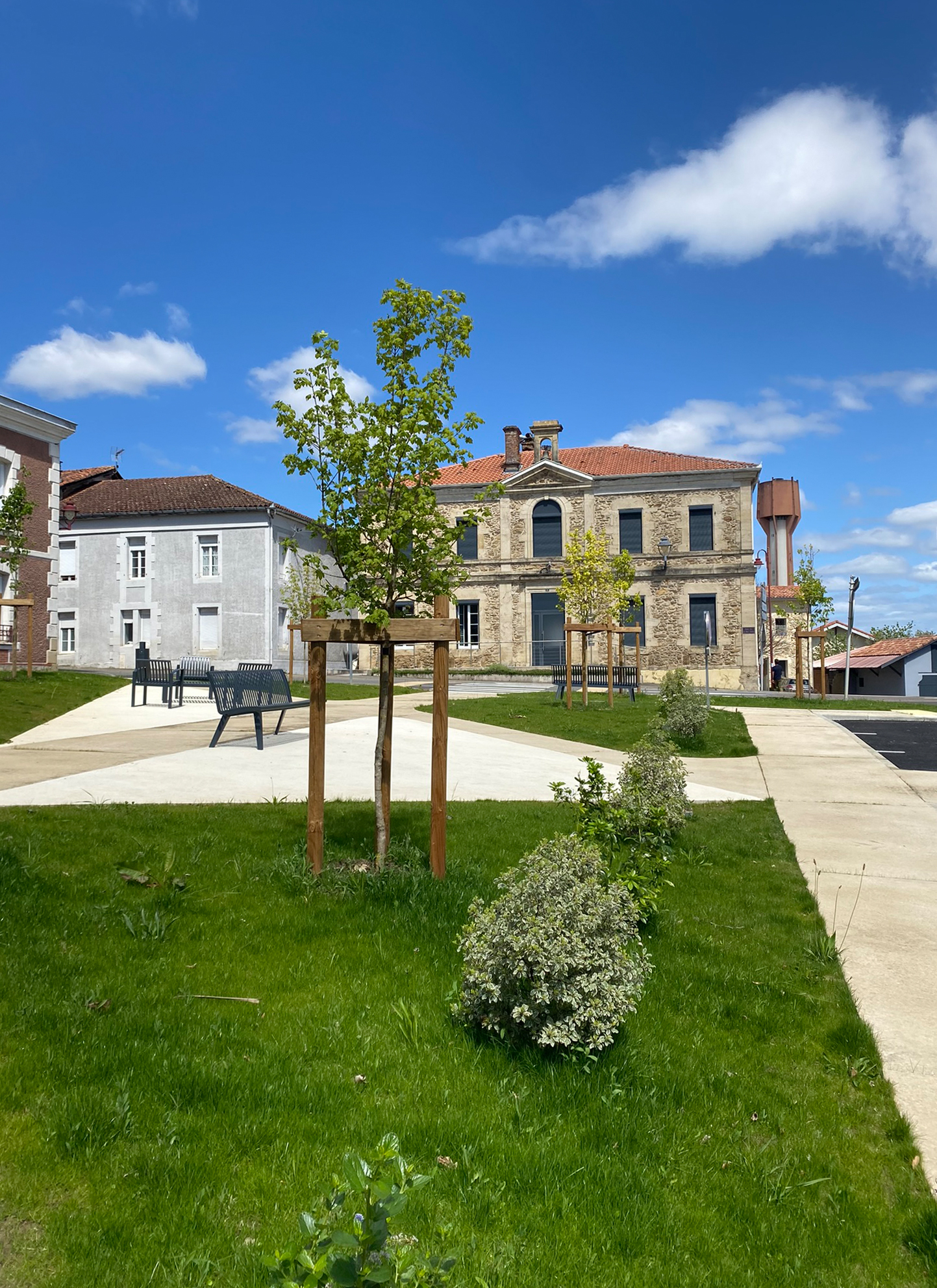 L’Église a retrouvé un parvis pour les cérémonies et les commémorations, la Mairie un jardin et la Maison Guilherme un espace de stationnements planté et arboré pour desservir commerces de proximité et espace santé.