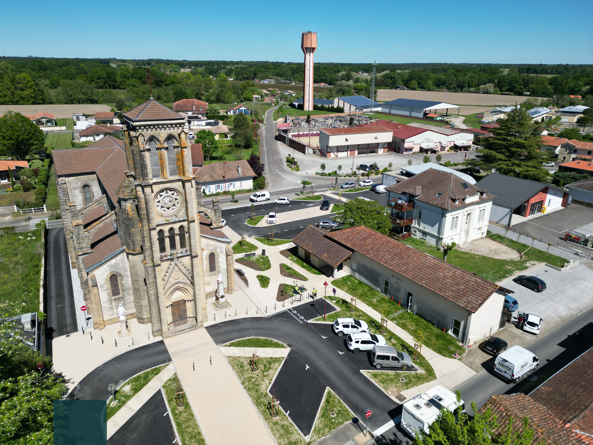 La rénovation des places publiques du bourg de Souprosse s’est imposée comme une évidence face au dynamisme grandissant de la commune. Ecole, commerces de proximité, pôle santé, le village avait besoin d’espaces publics pratiques, fonctionnels et accueillants pour répondre aux besoins d’une commune rurale dynamique.