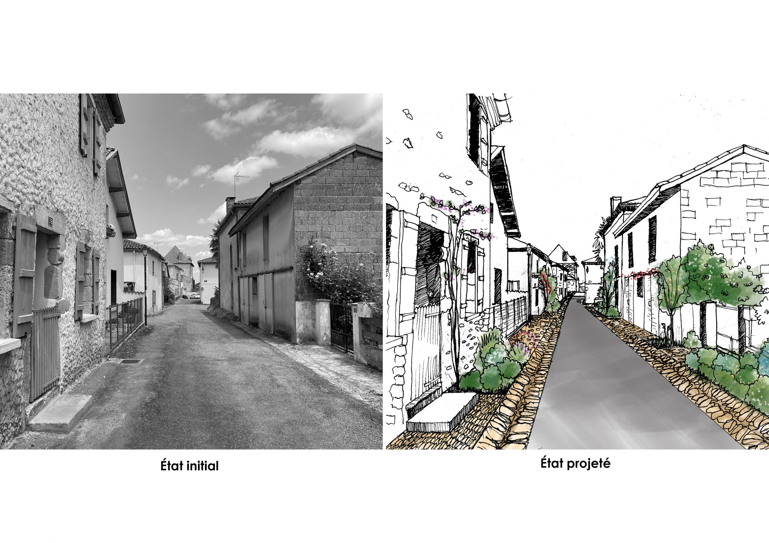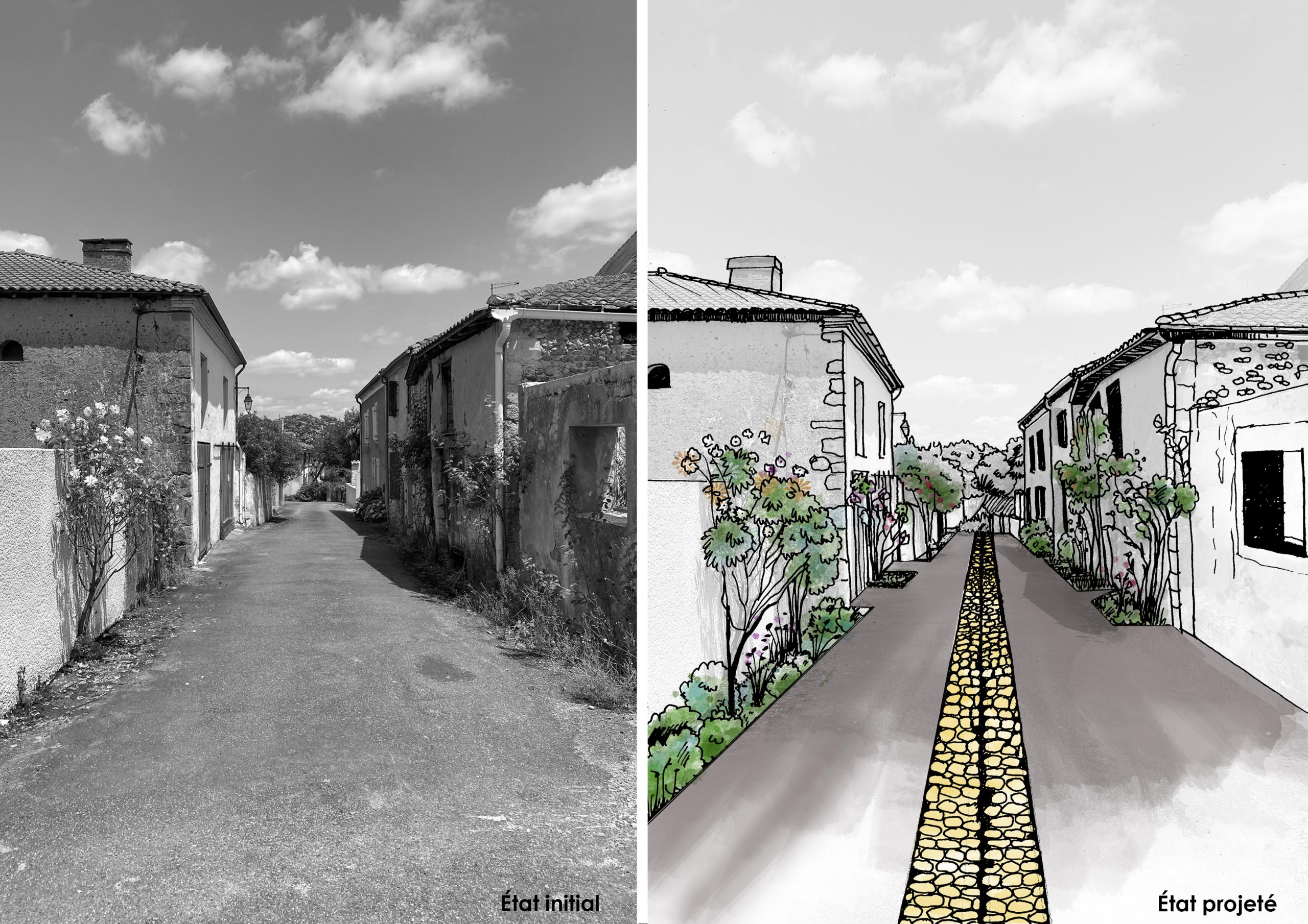 Les revêtements de surfaces dégradés, des problèmes de salubrité avec des seuils de maisons plus bas que la voirie et le manque d’espaces verts ont orienté le projet vers un aménagement fonctionnel et esthétique.