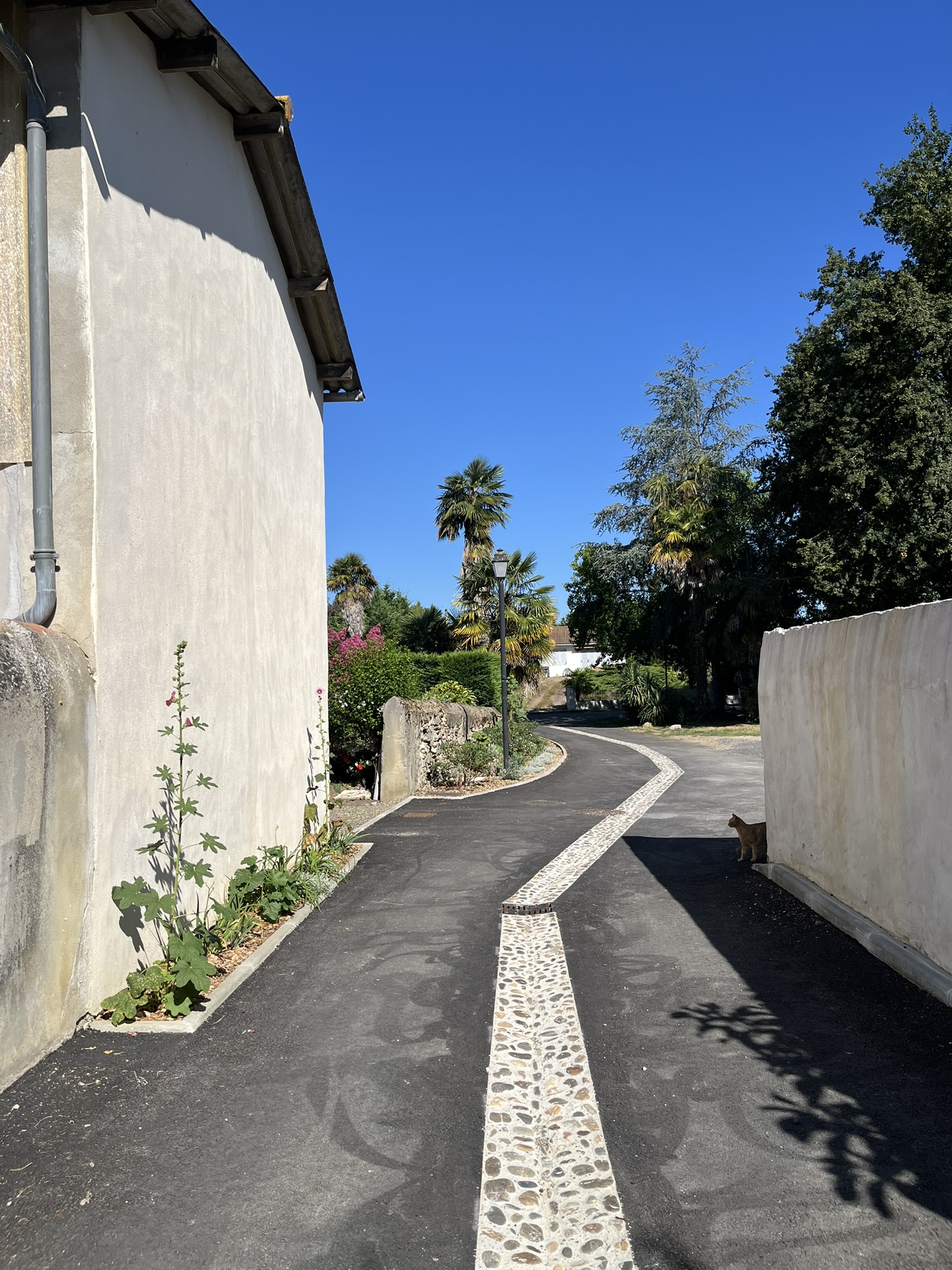 La création de calades en galets facilite la gestion des eaux pluviales. Installées de part et d’autre ou au centre des voiries en enrobés, les eaux sont dirigées vers le réseau et les espaces filtrants de pleine terre.